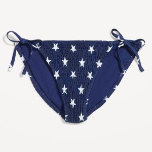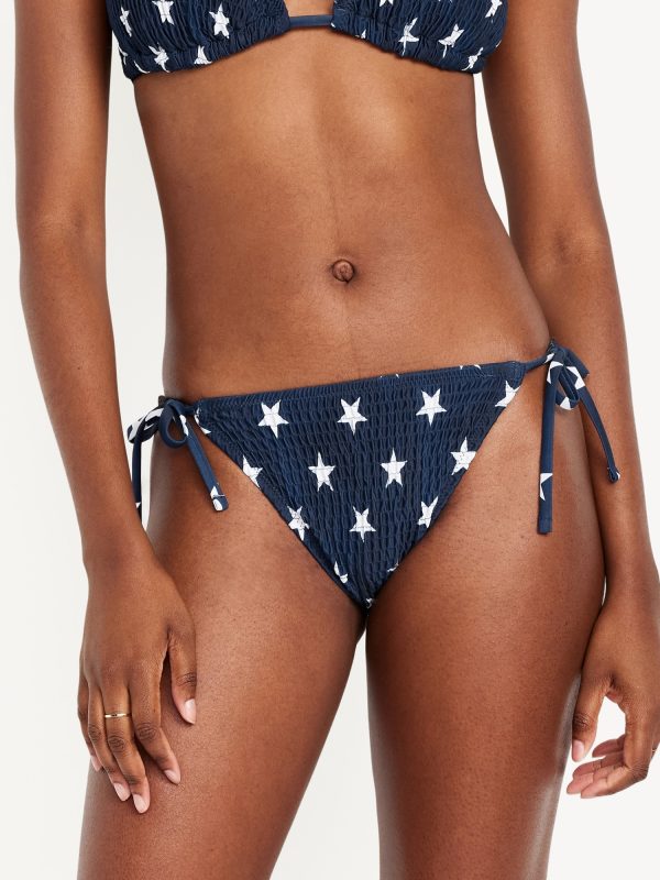 Mid-Rise Textured String Bikini Swim Bottoms: side ties, elastic waist, elastic leg openings, #864987