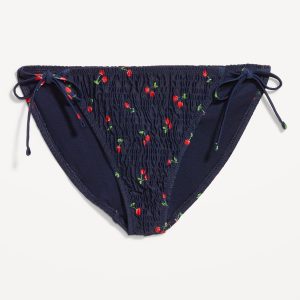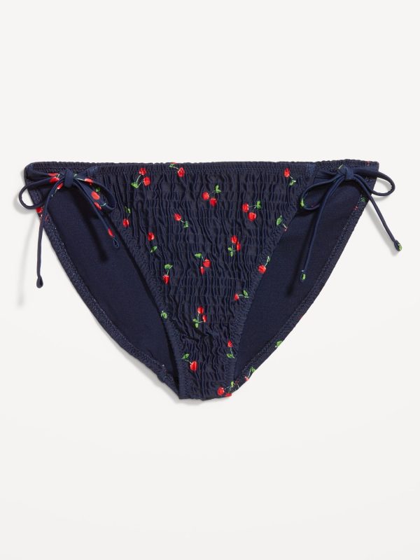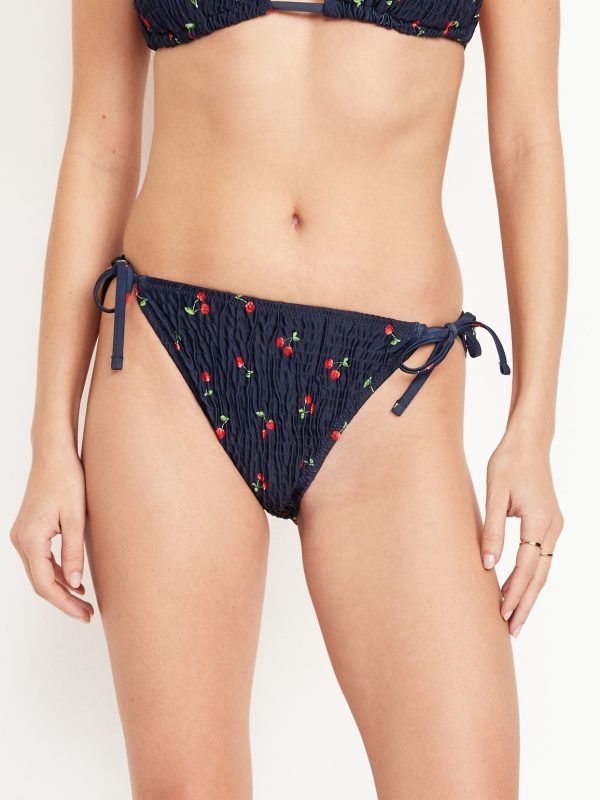 Mid-Rise Textured String Bikini Swim Bottoms: side ties, elastic waist, elastic leg openings, #864987