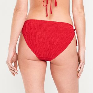 Mid-Rise Textured String Bikini Swim Bottoms: side ties, elastic waist, elastic leg openings, #864987