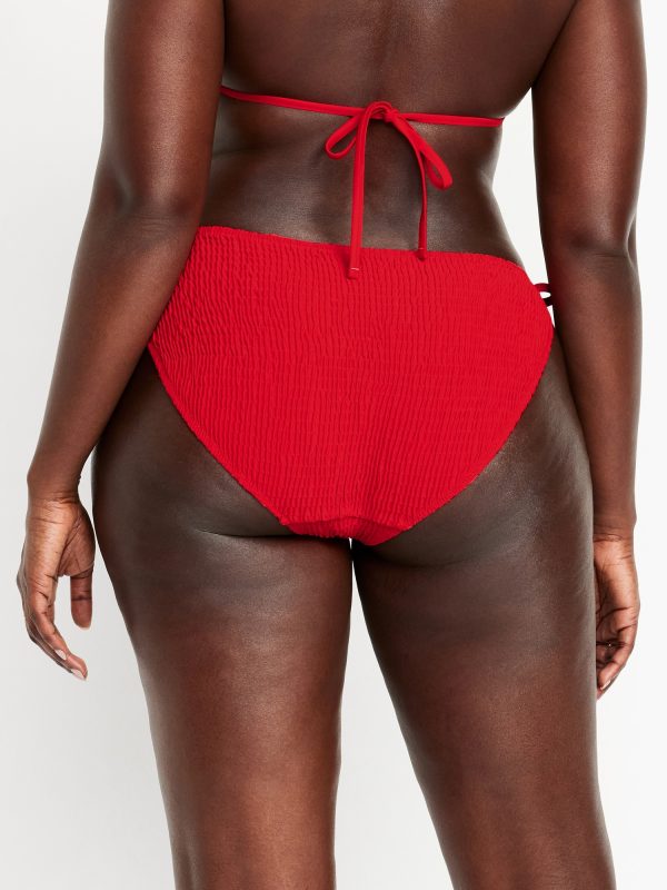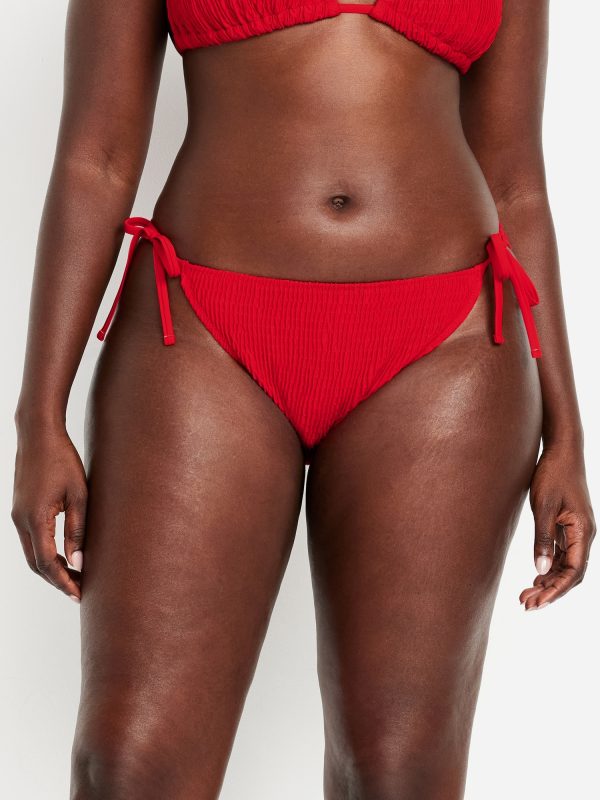 Mid-Rise Textured String Bikini Swim Bottoms: side ties, elastic waist, elastic leg openings, #864987