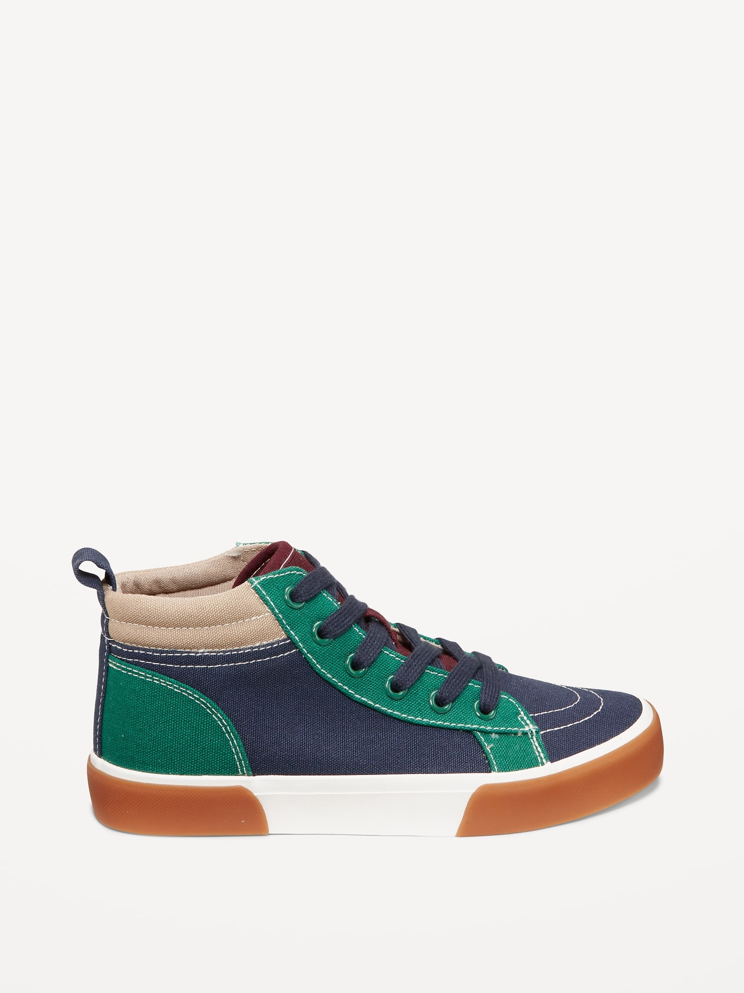 Mid-Top Canvas Lace-Up Sneakers for Boys: cushioned foot bed, contrasting rubber midsole, vulcanized outsole, padded collar for gentle ankle support, pull tab at heel, #761661