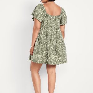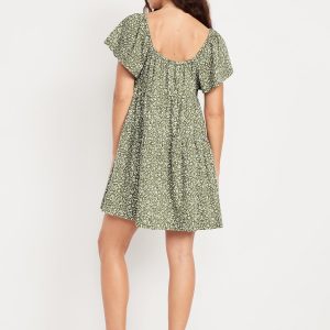 Mini Floral Swing Dress: square elastic neckline, flutter sleeves, tiered seams, shirred detail, #809629