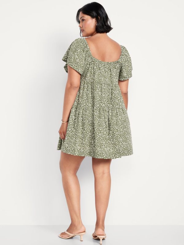 Mini Floral Swing Dress: square elastic neckline, flutter sleeves, tiered seams, shirred detail, #809629