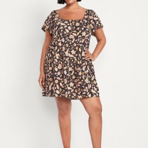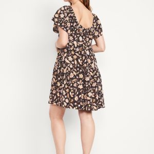 Mini Floral Swing Dress: square elastic neckline, flutter sleeves, tiered seams, shirred detail, #809629