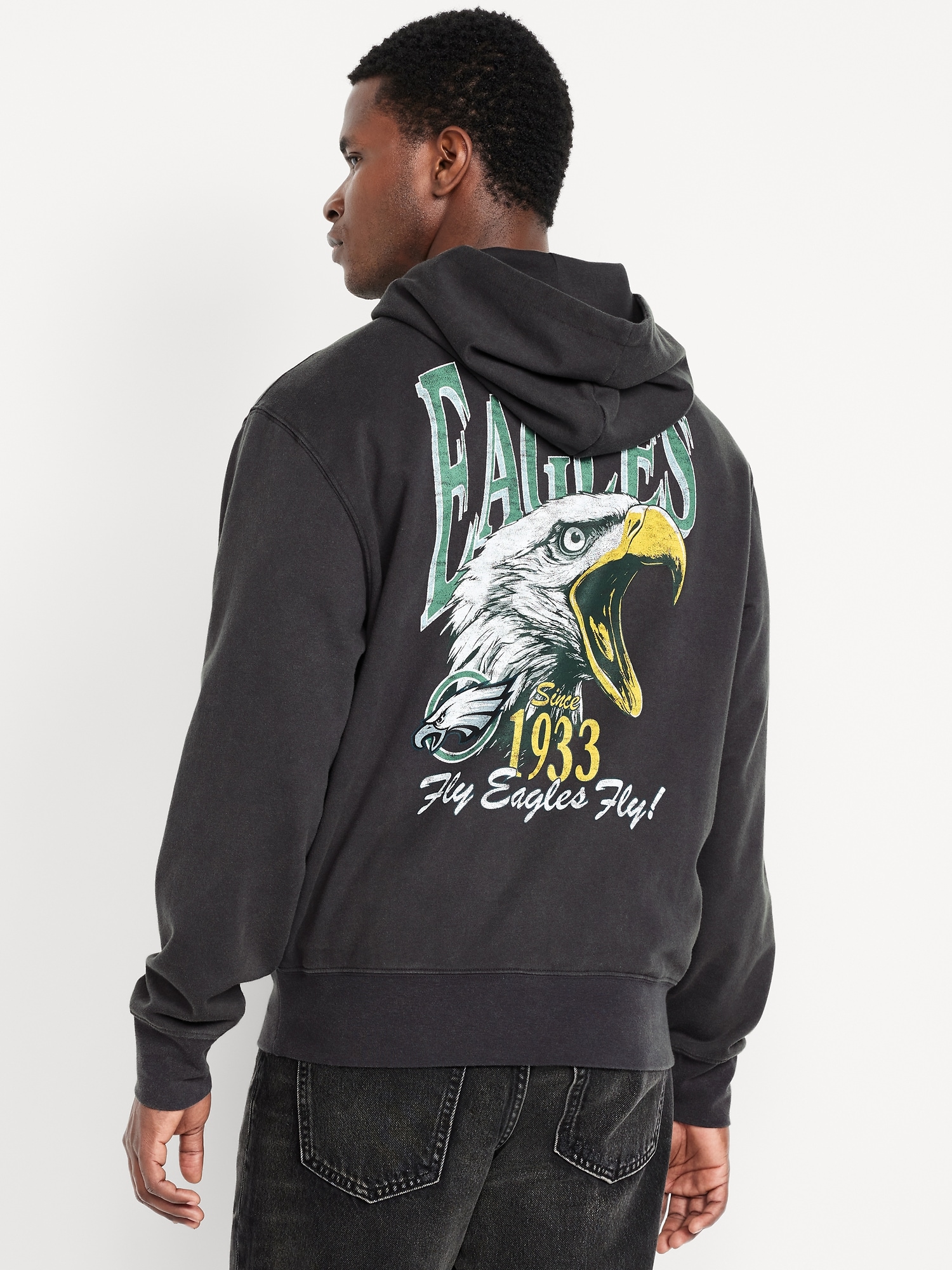NFL™ Philadelphia Eagles Hoodie Sweatshirt: built-in hood, long sleeves, licensed graphic, kangaroo pocket, pullover style, © 2025 NFL Enterprises LLC. NFL and the NFL shield design are registered trademarks of the National Football League., #810917