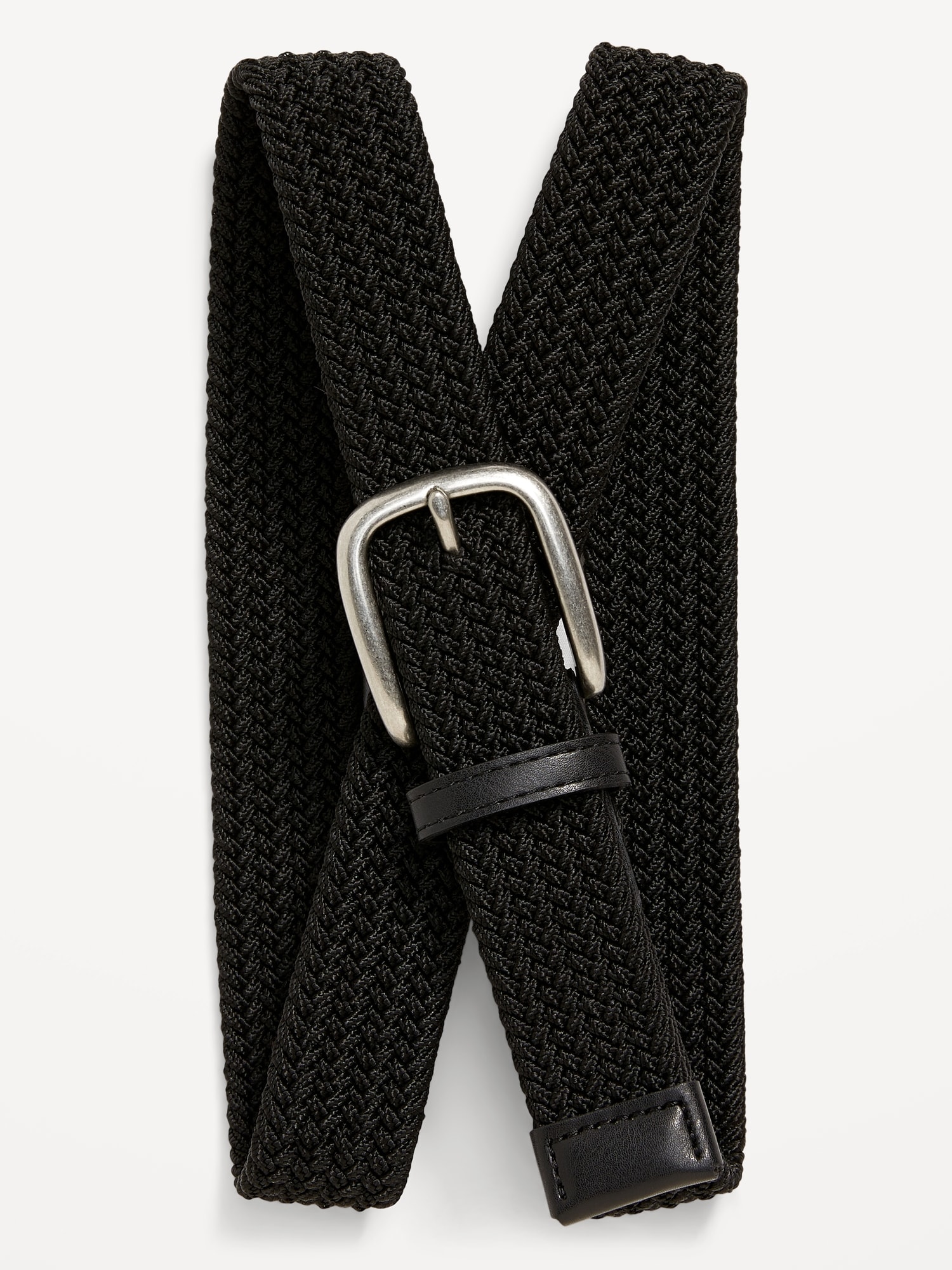 Nylon Braided Belt (1.25-inch): braided-nylon belt, metal buckle, faux-leather accents, #846035