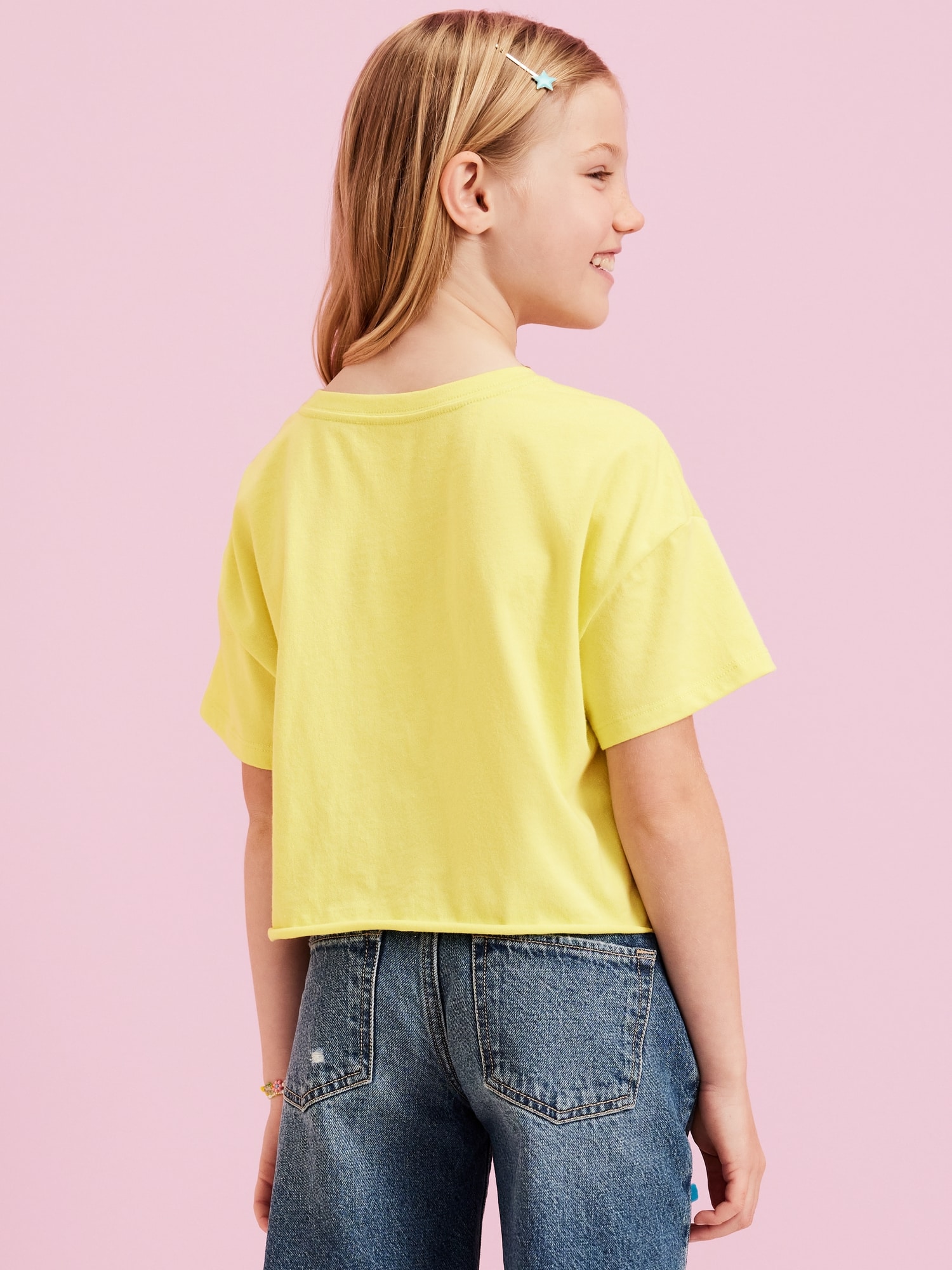 Old Navy x Disney© Cropped Graphic Raw-Edge T-Shirt for Girls: crew neck, short sleeves, licensed character graphic varies, raw-edge hem, Disney©, #763495