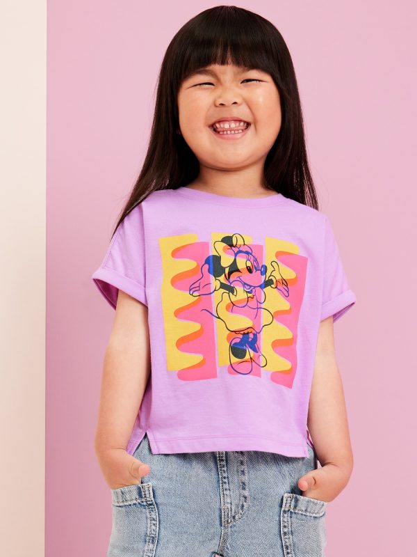 Old Navy x Disney© Dolman-Sleeve T-Shirt for Toddler Girls: crew neck, short dolman sleeves, rolled cuffs, licensed graphic, forward side seam with slits, Disney©, #762108