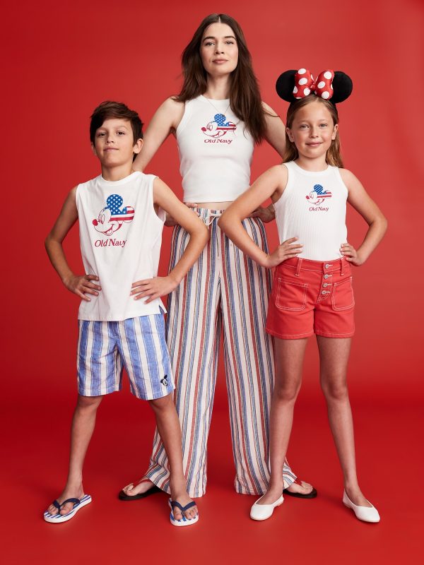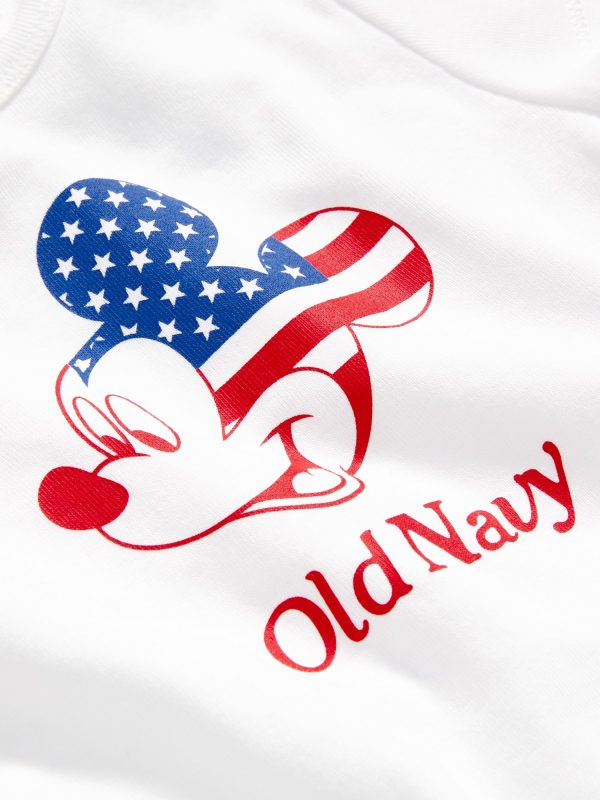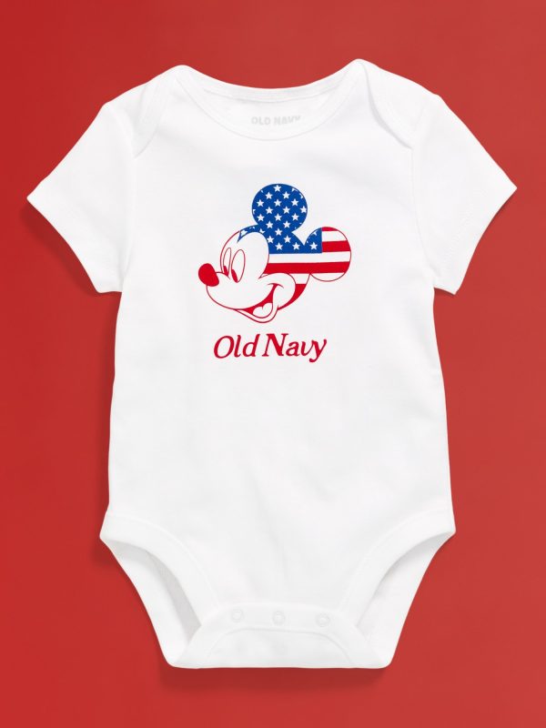 Old Navy x Disney© Mickey Mouse Flag Logo-Graphic Bodysuit for Baby: Two icons, together at last. Family matching for the crew!rib-knit envelope neckline, short sleeves, snaps along inseam, licensed graphic, Disney©, #776474