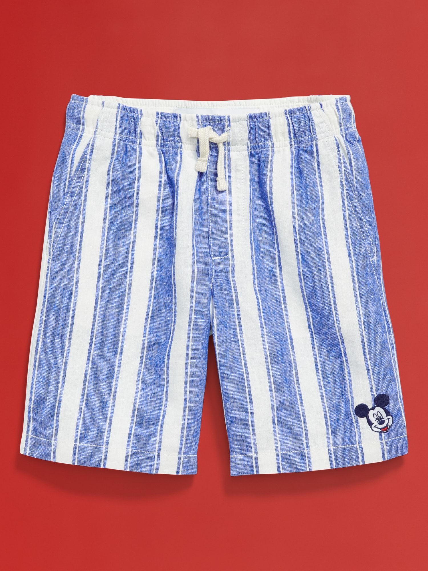 Old Navy x Disney© Mickey Mouse Knee Length Linen-Blend Shorts for Boys: Two icons, together at last. Family matching for the crew!elasticized waistband, functional drawstring, diagonal on-seam pockets, single welt pocket at back, contrasting blanket stitch trim along pockets, small-scale embroidered licensed graphic, Disney©, #766374