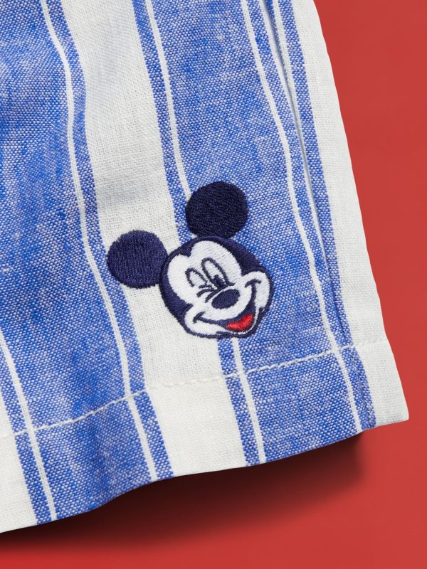 Old Navy x Disney© Mickey Mouse Knee Length Linen-Blend Shorts for Boys: Two icons, together at last. Family matching for the crew!elasticized waistband, functional drawstring, diagonal on-seam pockets, single welt pocket at back, contrasting blanket stitch trim along pockets, small-scale embroidered licensed graphic, Disney©, #766374