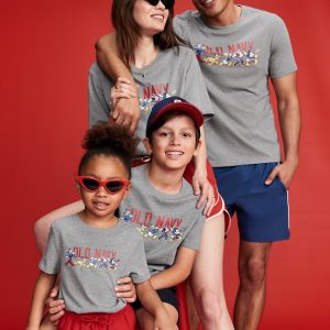 Old Navy x Disney© Short-Sleeve Logo-Graphic Bodysuit for Baby: Two icons, together at last. Family matching for the crew!rib-knit envelope neckline, short sleeves, snaps along inseam, licensed graphic, Disney©, #776474