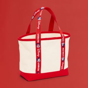 Old Navy x Disney Small Tote Bag: sturdy canvas, webbed straps with repeating licensed graphic, snap-top closure, interior pocket, ©Disney, #761732