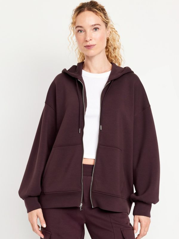 Oversized Bounce Fleece Zip Tunic Hoodie Sweatshirt: Featuring Bounce Fleece. A smooth, cooling finish that feels good and looks chic everywhere you go.drawstring hood, drop-shoulder sleeves, full-zip front, hand-warming pockets, breathable, #569981