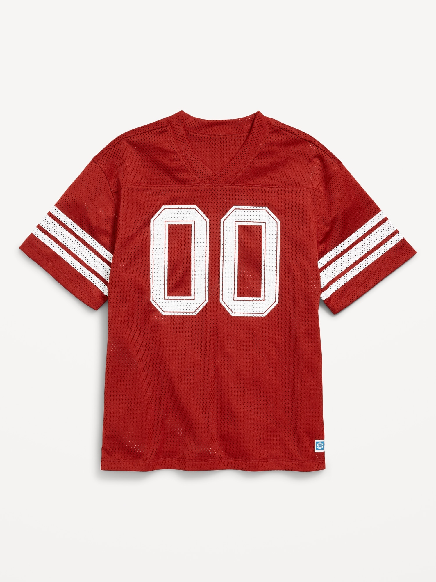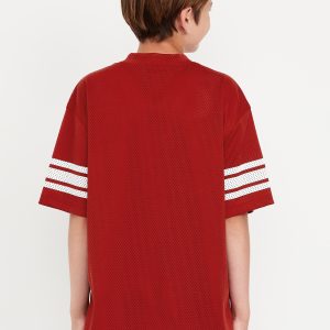 Oversized Boxy Mesh Graphic T-Shirt for Boys: v neck, short sleeves, drop shoulders, stripes at sleeves, graphic at front, #761889