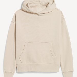 Oversized Cropped Hoodie: built-in hood, long sleeves, kangaroo pocket, rib-knit trim, pullover style, #665120