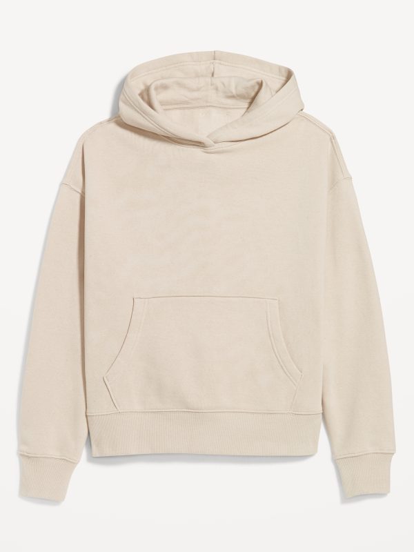 Oversized Cropped Hoodie: built-in hood, long sleeves, kangaroo pocket, rib-knit trim, pullover style, #665120
