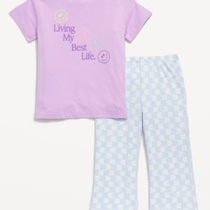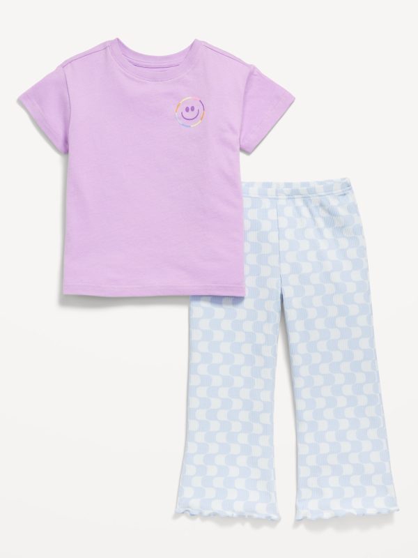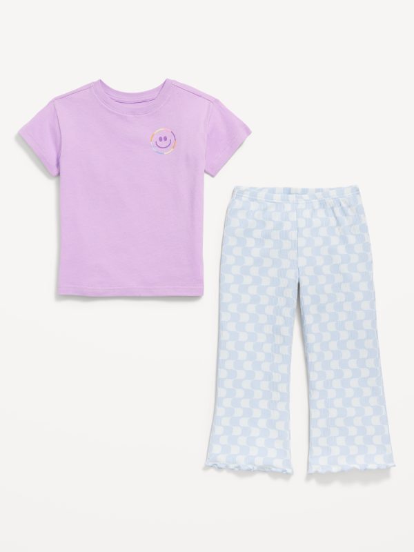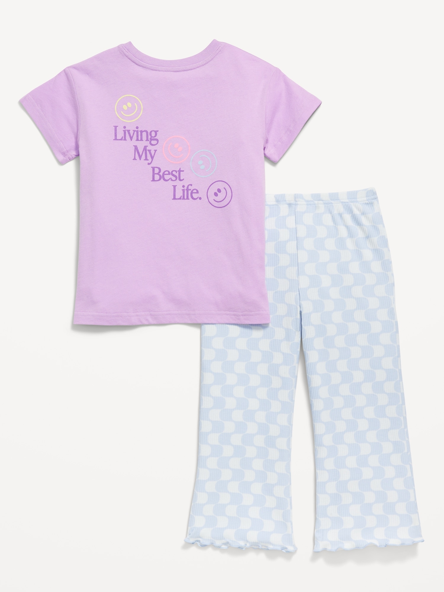 Oversized Graphic T-Shirt and Ribbed Flare Leggings Set for Toddler Girls: crew neck, short sleeves, graphic at front, coordinating leggings, elasticized waistband, lettuce edge hem, #762120