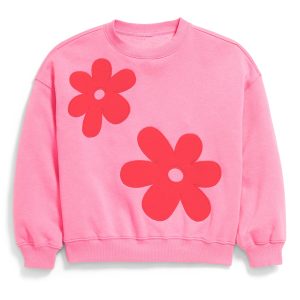 Oversized Graphic Tunic Sweatshirt for Girls: crew neck, long sleeves, drop shoulders, large print at front, banded hem, easy pullover style, #787768
