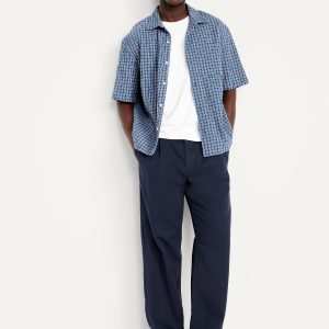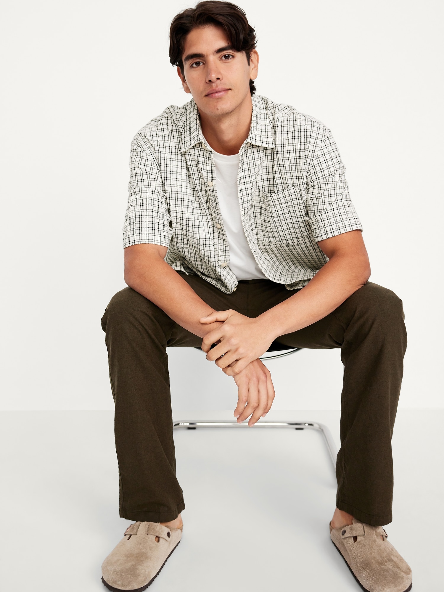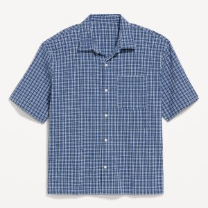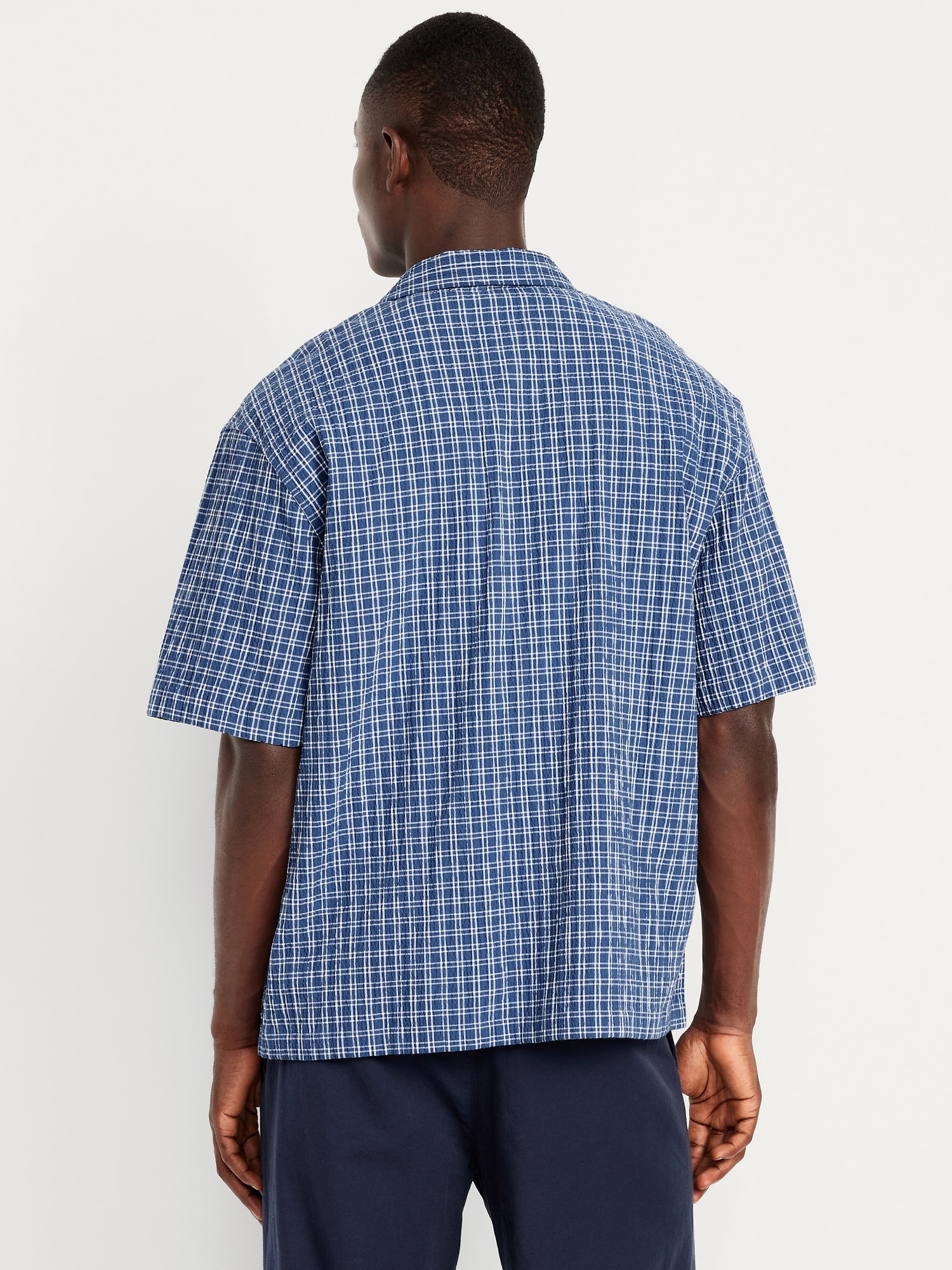 Oversized Heavyweight Shirt: spread collar, short sleeves, full-button front, patch chest pocket, #762362