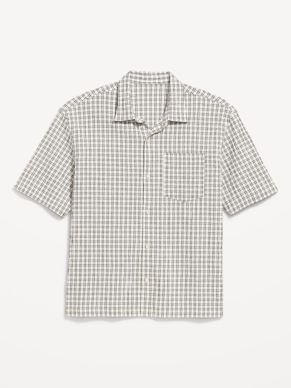 Oversized Heavyweight Shirt: spread collar, short sleeves, full-button front, patch chest pocket, #762362