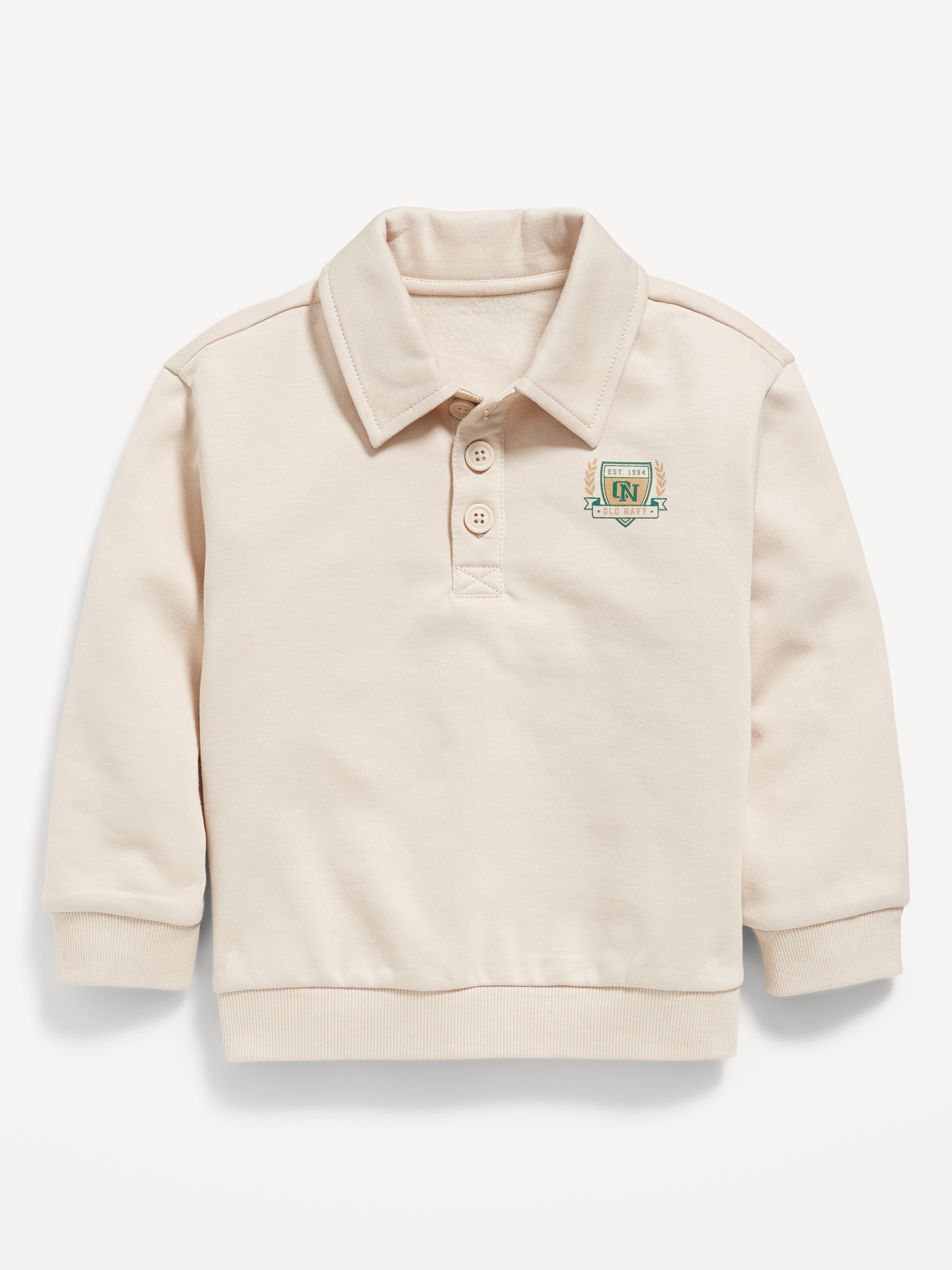 Oversized Logo-Graphic Collared Sweatshirt for Toddler Boys: pointed collar, long sleeves, three-button placket, small-scale logo graphic at chest, #787811
