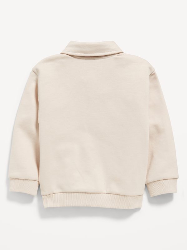 Oversized Logo-Graphic Collared Sweatshirt for Toddler Boys: pointed collar, long sleeves, three-button placket, small-scale logo graphic at chest, #787811
