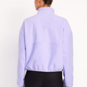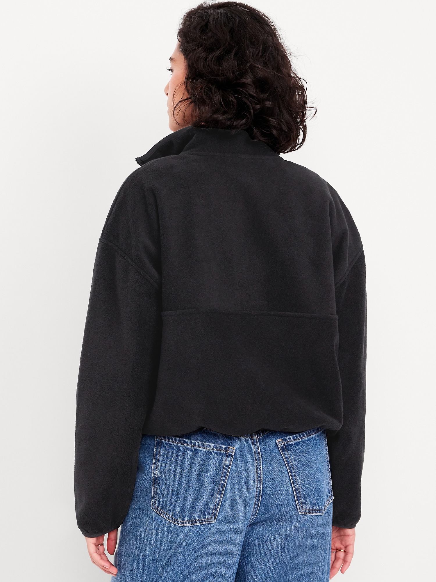 Oversized Performance Microfleece Cropped Half Zip: half-zip funnel neck, drop-shoulder sleeves with elastic cuffs, on-seam pockets, elastic hem, pullover style, color-blocked panels, #784810