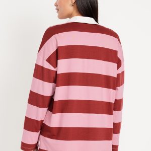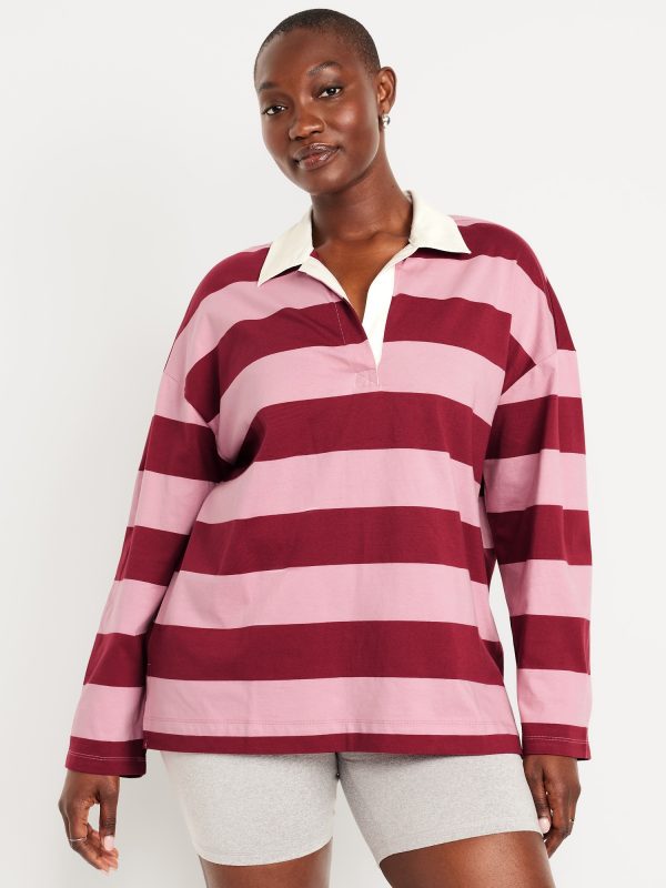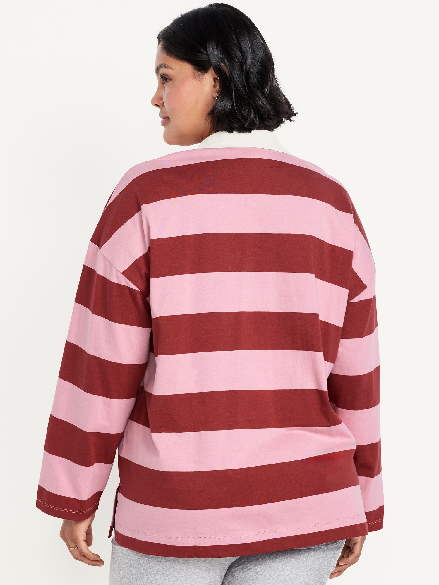 Oversized Rugby Polo: spread twill collar, long sleeves, wide contrasting stripes, #764298