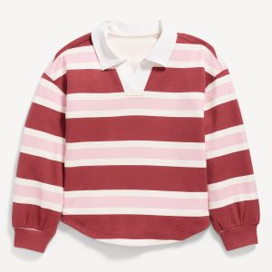 Oversized Rugby Polo Shirt for Girls: pointed collar, v neck, long wide sleeves, drop shoulders, rounded hem, #789714