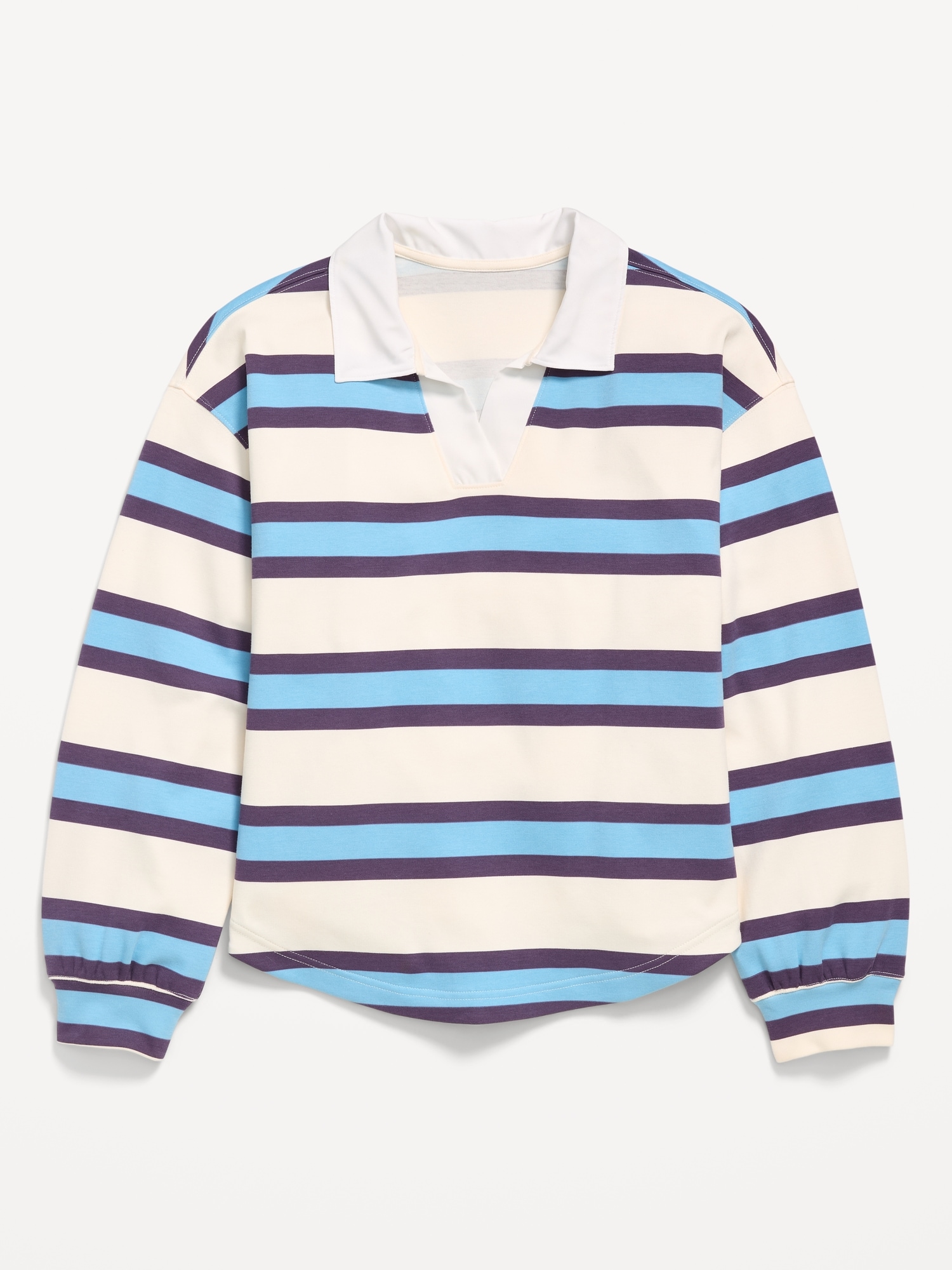 Oversized Rugby Polo Shirt for Girls: pointed collar, v neck, long wide sleeves, drop shoulders, rounded hem, #789714