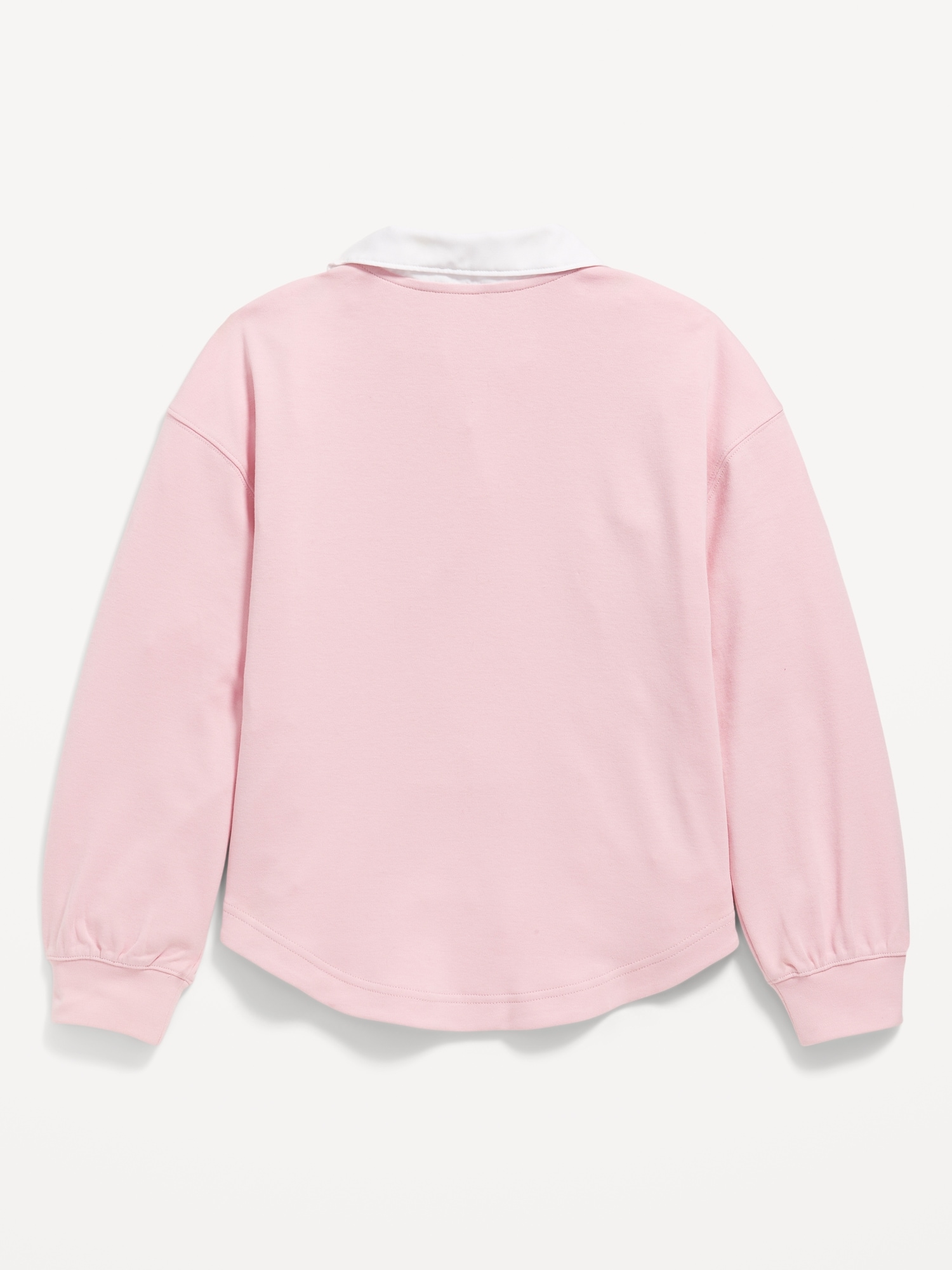 Oversized Rugby Polo Shirt for Girls: pointed collar, v neck, long wide sleeves, drop shoulders, rounded hem, #789714
