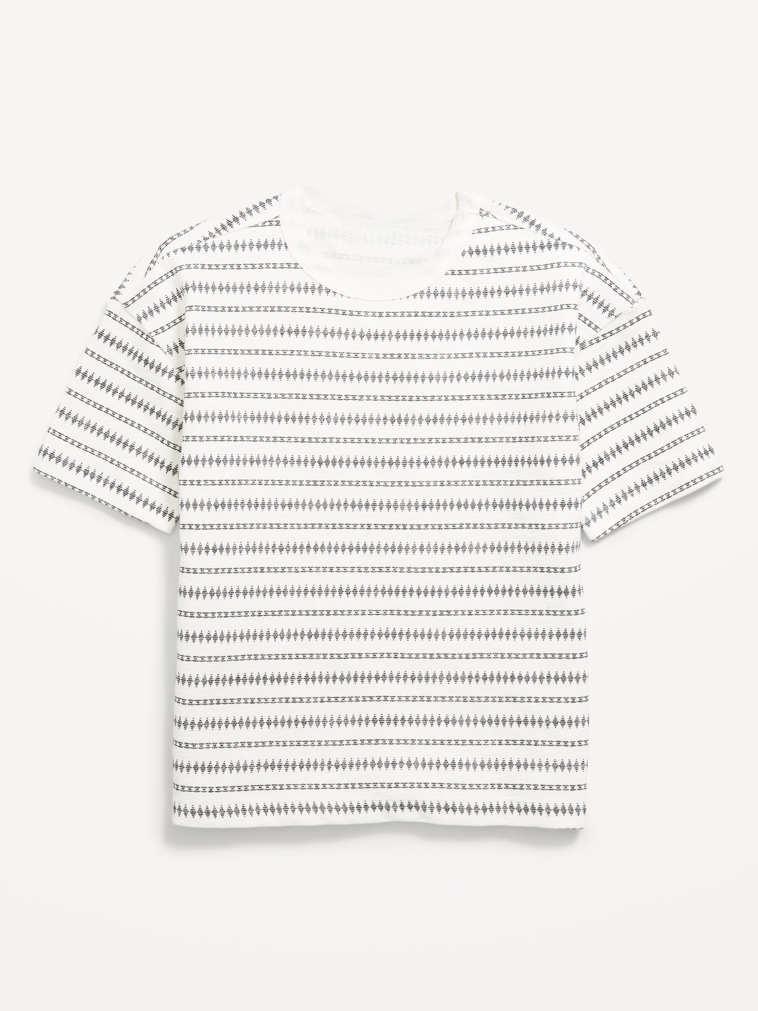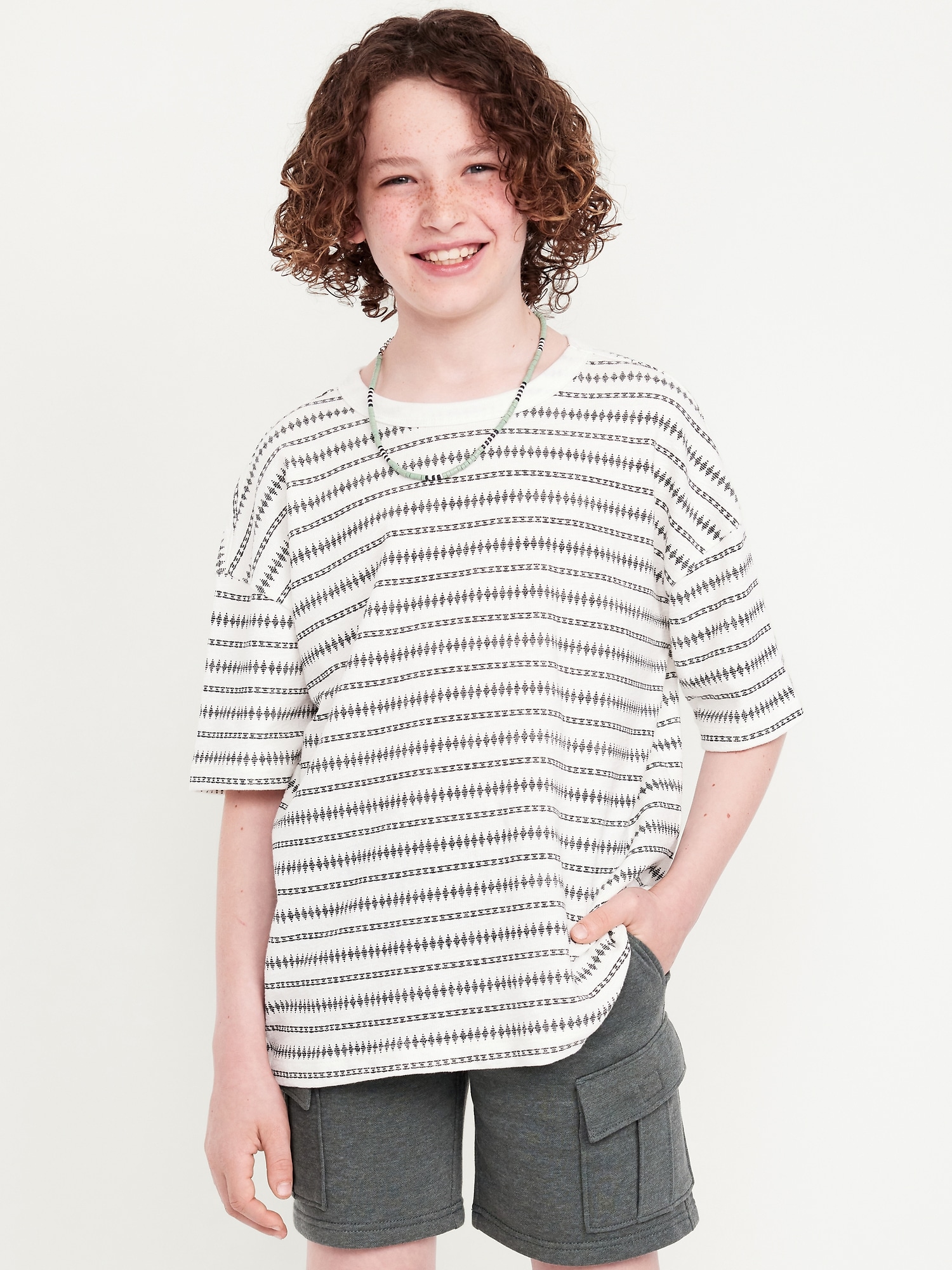 Oversized Short-Sleeve Jacquard-Knit T-Shirt for Boys: crew neck, short sleeves, drop shoulders, all-over print, textured jacquard, #750349