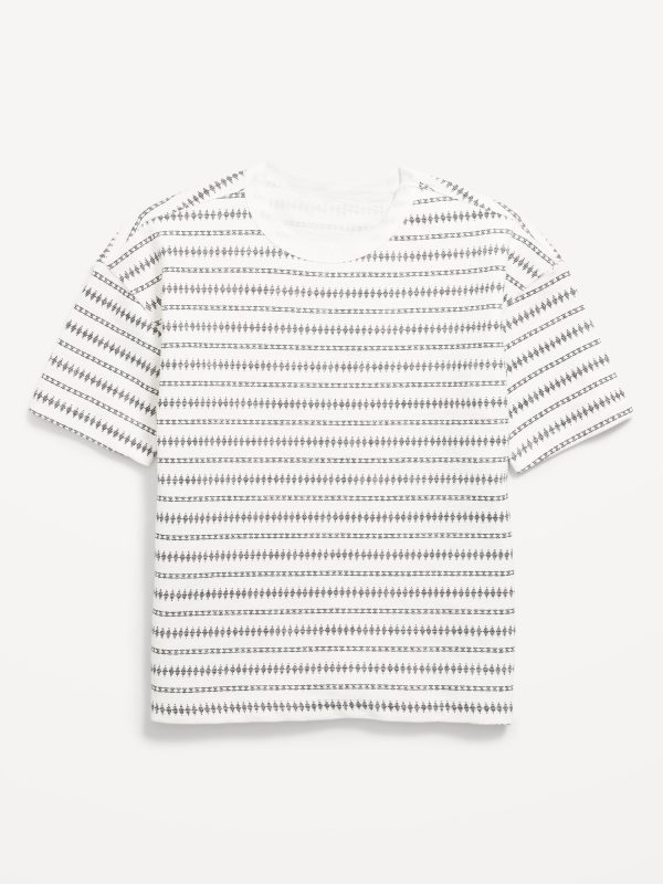 Oversized Short-Sleeve Jacquard-Knit T-Shirt for Boys: crew neck, short sleeves, drop shoulders, all-over print, textured jacquard, #750349