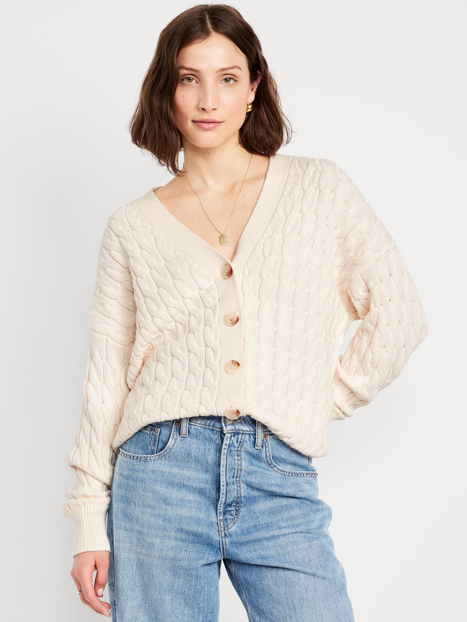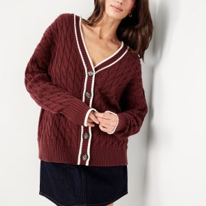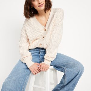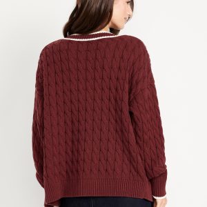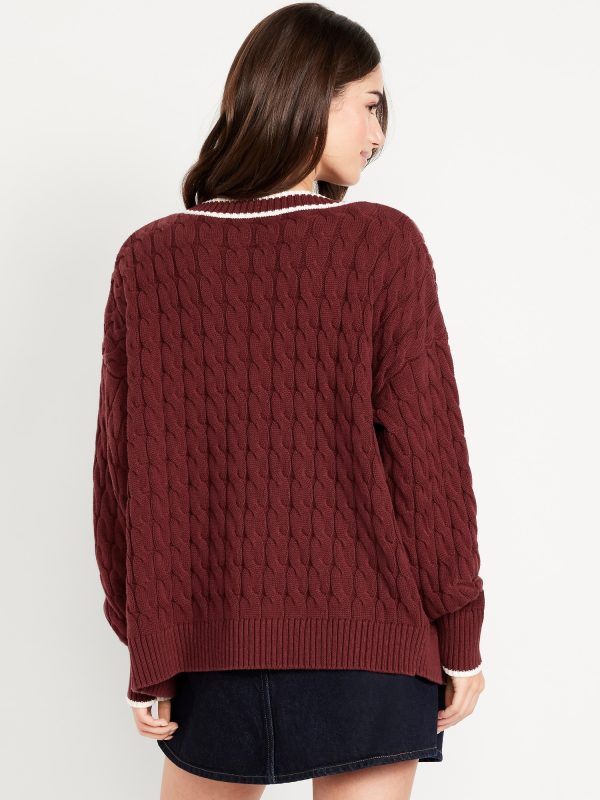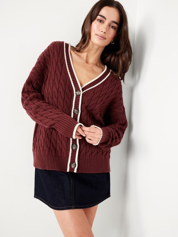 Oversized Slouchy Cable-Knit Cardigan Sweater