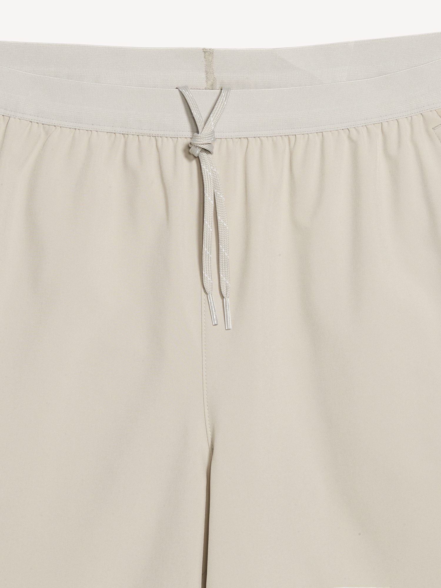 Performance Vent Run Shorts — 7-inch inseam: elastic-drawstring waistband, hidden back pocket at waist, diagonal hip pockets, vented sides, built-in briefs, breathable, quick dry, four-way stretch, #693436