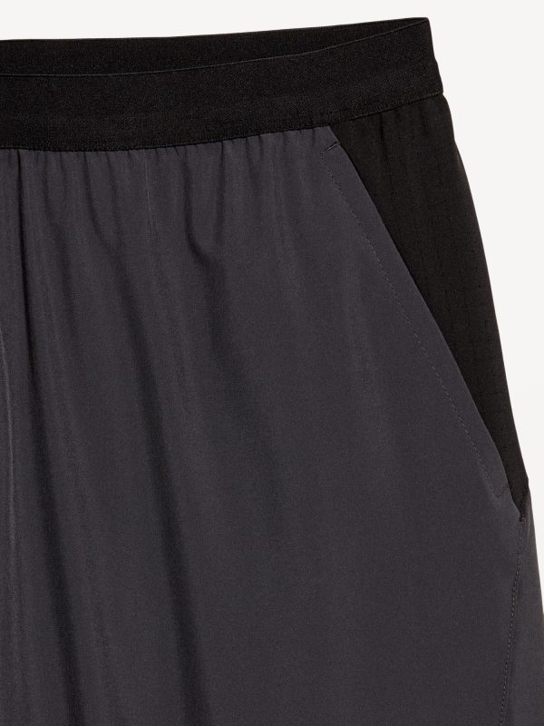 Performance Vent Run Shorts — 7-inch inseam: elastic-drawstring waistband, hidden back pocket at waist, diagonal hip pockets, vented sides, built-in briefs, breathable, quick dry, four-way stretch, #693436