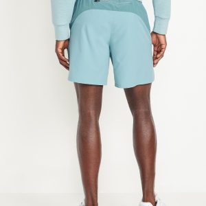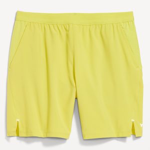 Performance Vent Run Shorts — 7-inch inseam: elastic-drawstring waistband, hidden back pocket at waist, diagonal hip pockets, vented sides, built-in briefs, breathable, quick dry, four-way stretch, #693436