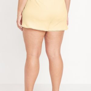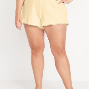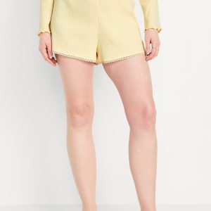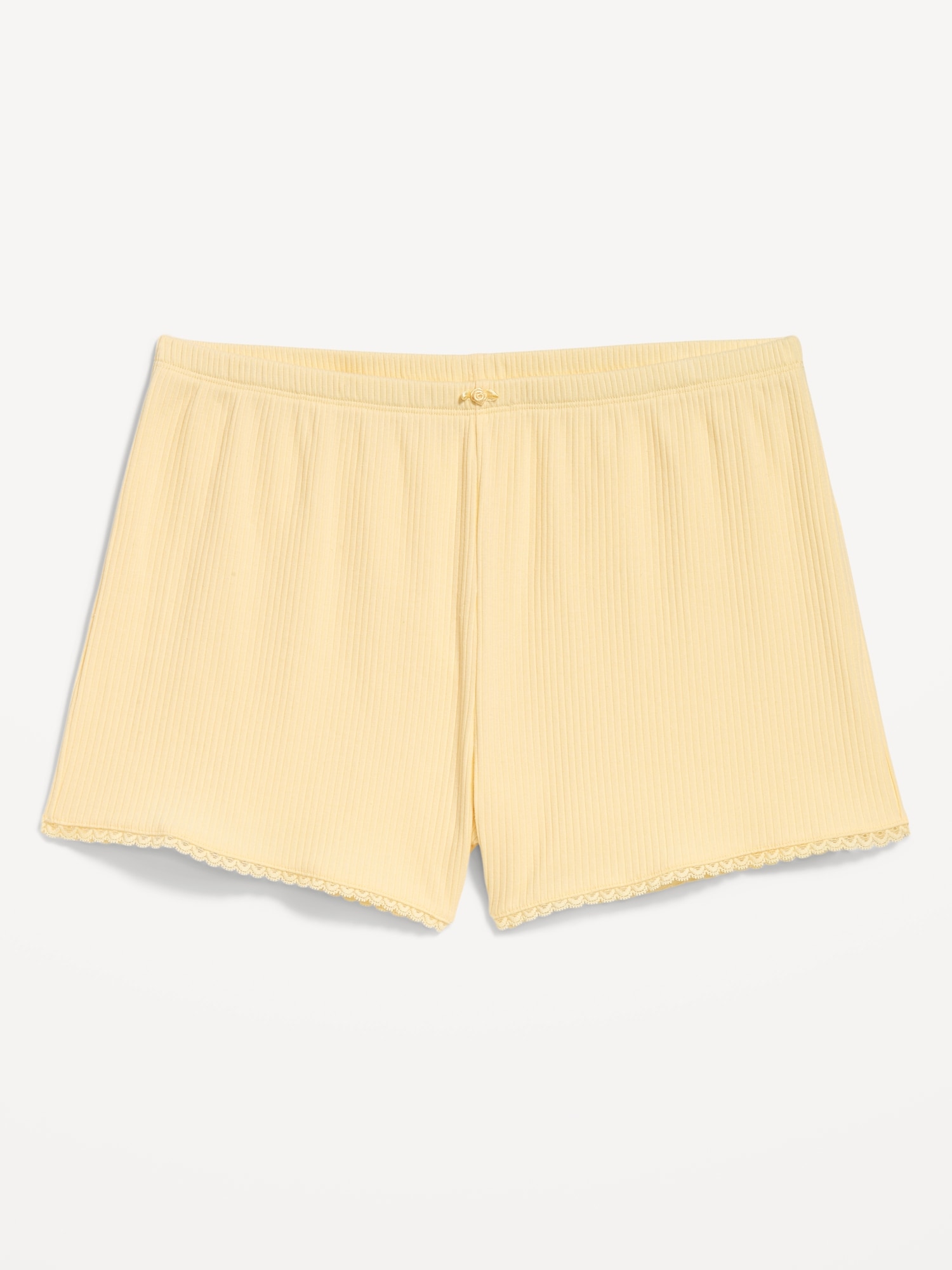 Pointelle Pajama Shorts: elasticized waistband, lace-trim hem, #707458