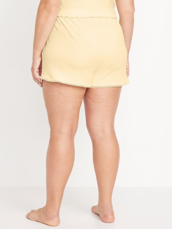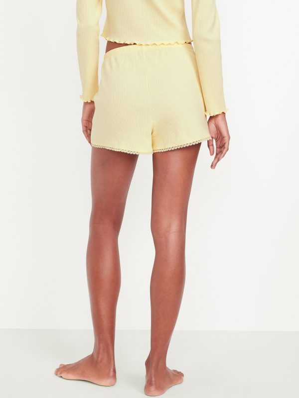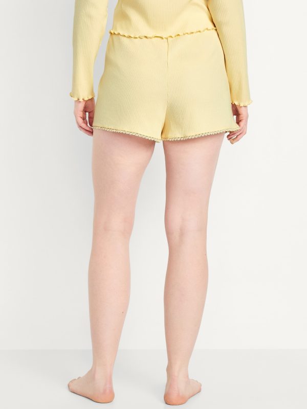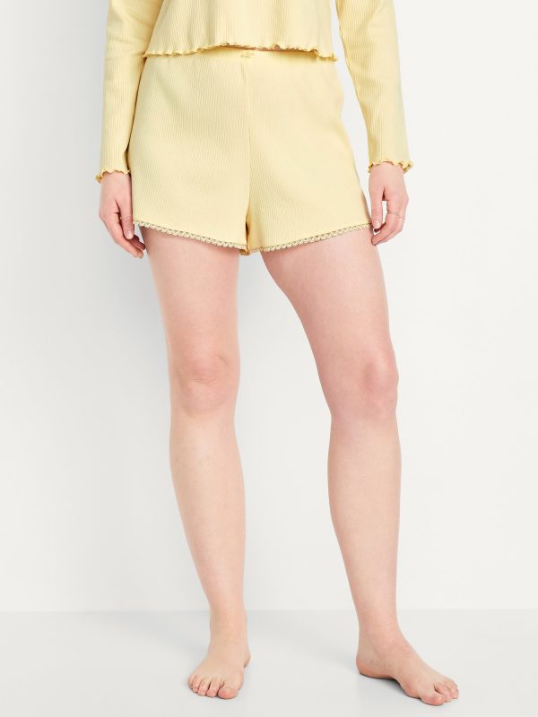 Pointelle Pajama Shorts: elasticized waistband, lace-trim hem, #707458