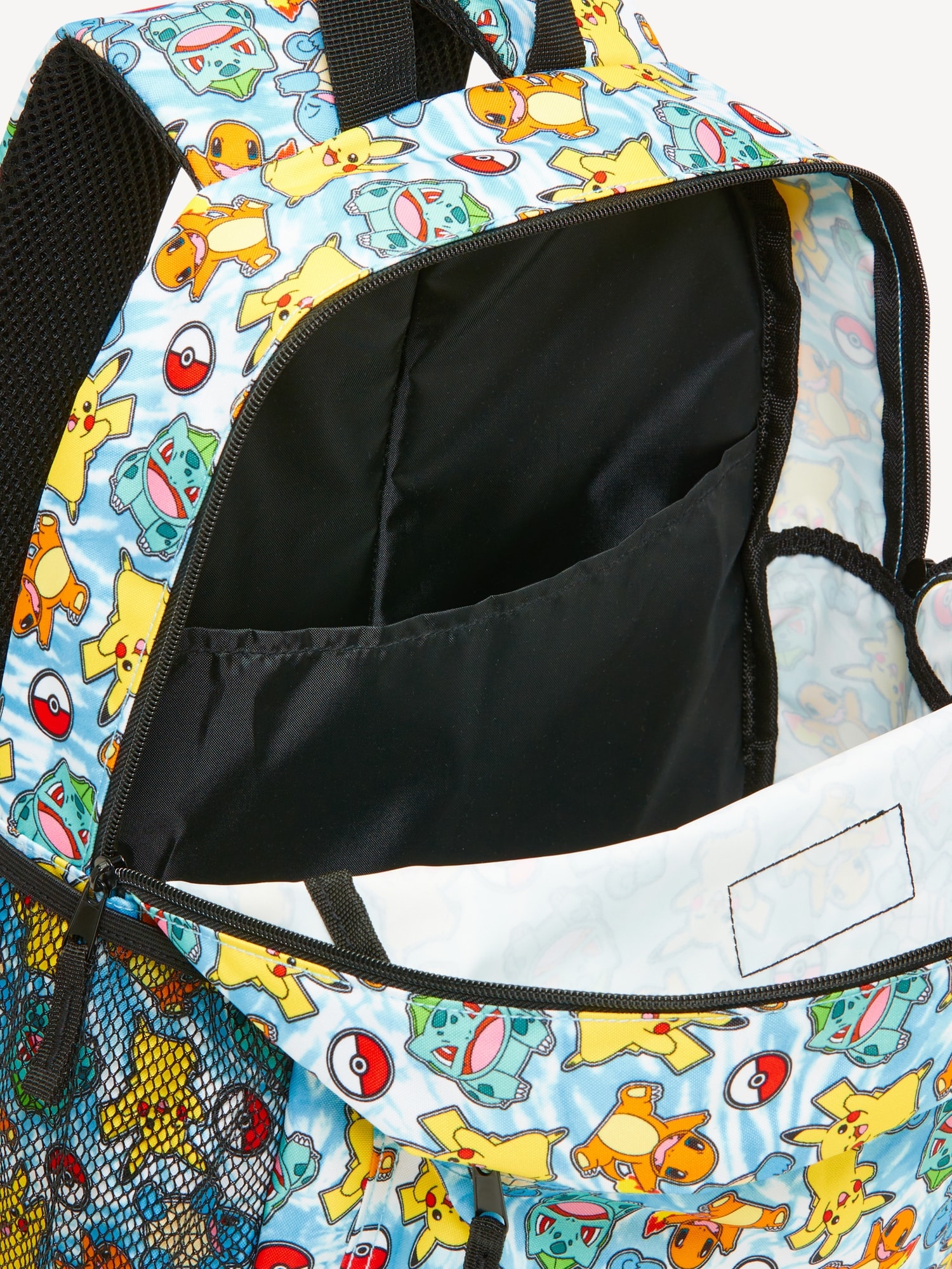Pokémon™ Canvas Backpack for Kids: The pack that’s got their literal back.zip-top closure, top handle, padded shoulder straps with adjustable buckles, padded mesh back for added comfort and breathability, exterior zippered pouch compartment, durable stretchy mesh side pouch, smooth interior with interior pocket, © 2025 The Pokémon Company International. ™, ® Nintendo., #763208
