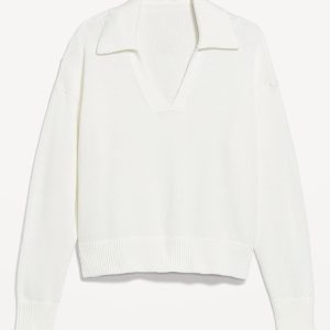Polo Sweater: spread v-neck collar, long sleeves, rib-knit trim, curved hi-lo hem, pullover style, #576850