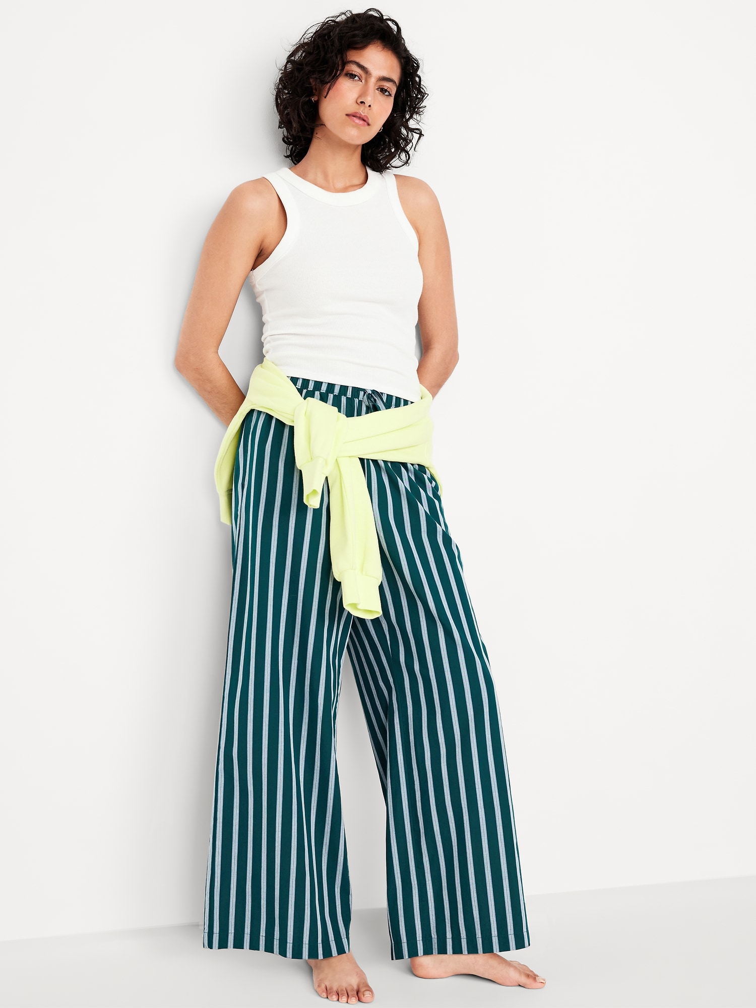 Poplin Wide-Leg Pajama Pants: Crisp, breathable cotton that’s classic for a reason.elastic-drawstring waistband, on-seam side pockets, plaid print, #798467