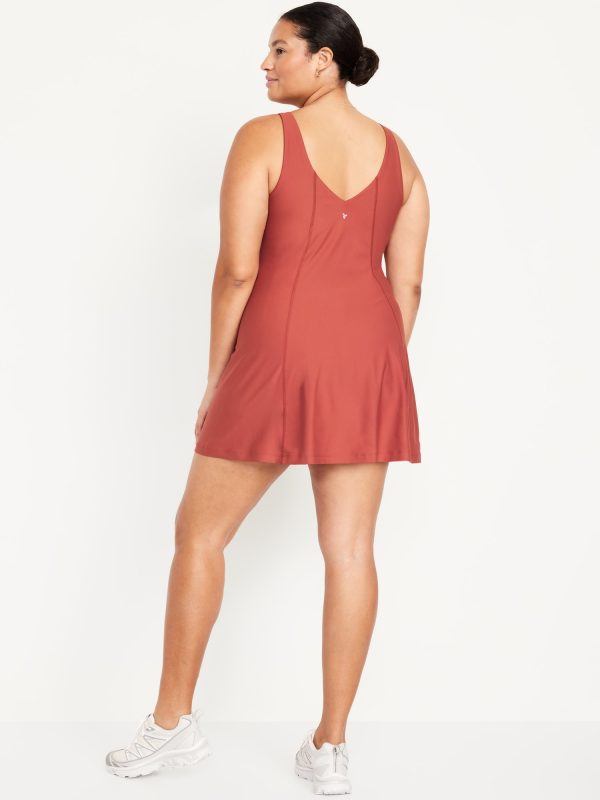 PowerSoft Athletic Dress: Featuring PowerSoft. Light compression meets a peachy-smooth, sweat-wicking fabric.v-neck, wide straps, shelf bra, go-dry wicks moisture, breathable, mini length, #662642