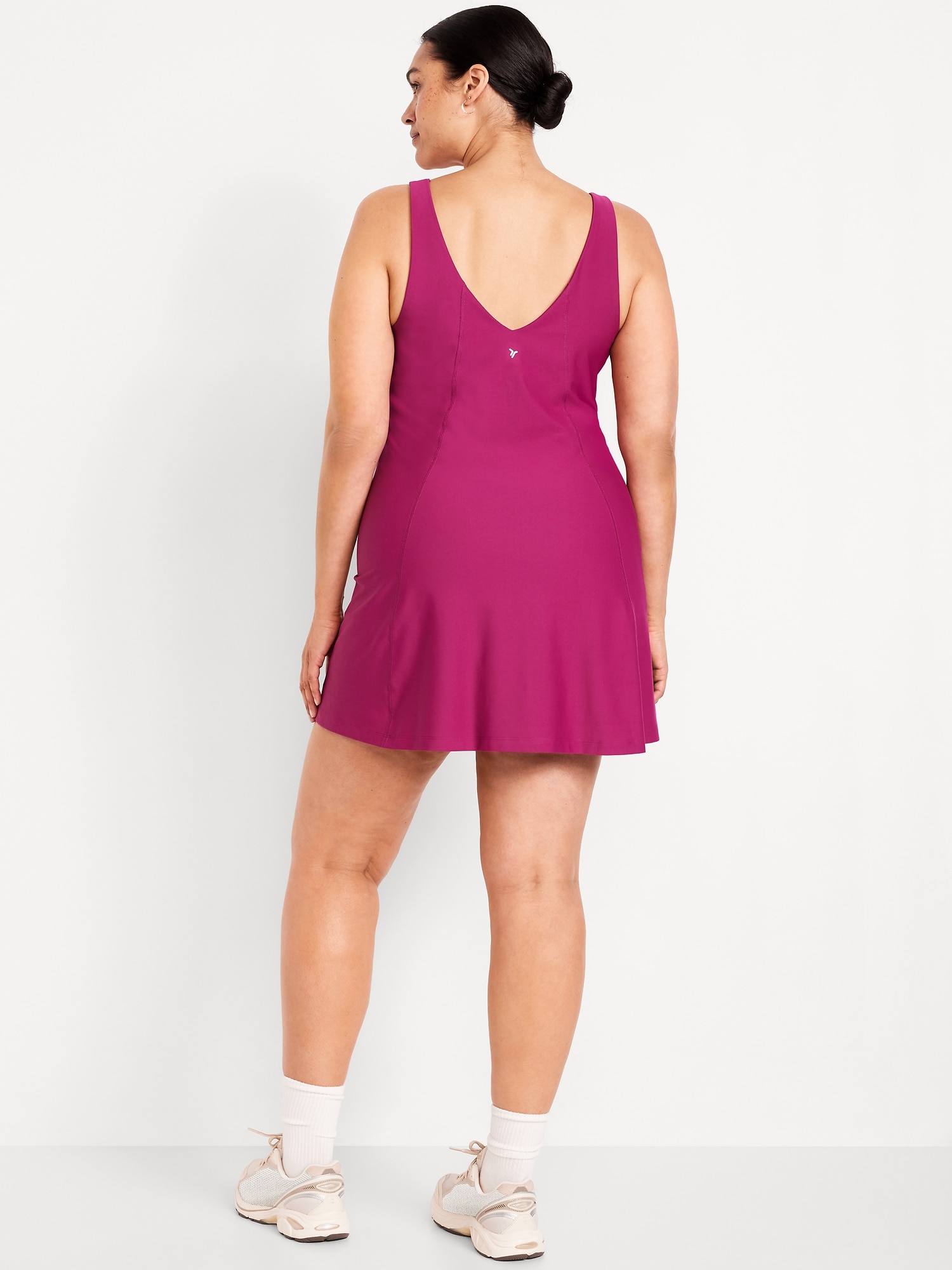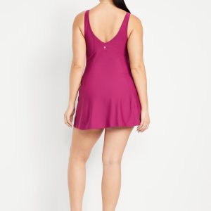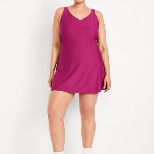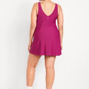 PowerSoft Athletic Dress: Featuring PowerSoft. Light compression meets a peachy-smooth, sweat-wicking fabric.v-neck, wide straps, shelf bra, go-dry wicks moisture, breathable, mini length, #662642