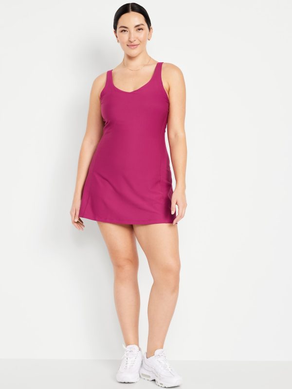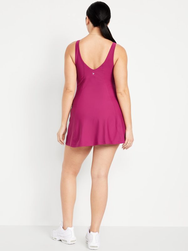 PowerSoft Athletic Dress: Featuring PowerSoft. Light compression meets a peachy-smooth, sweat-wicking fabric.v-neck, wide straps, shelf bra, go-dry wicks moisture, breathable, mini length, #662642