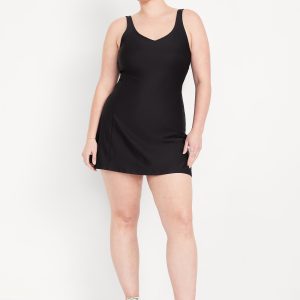 PowerSoft Athletic Dress: Featuring PowerSoft. Light compression meets a peachy-smooth, sweat-wicking fabric.v-neck, wide straps, shelf bra, go-dry wicks moisture, breathable, mini length, #662642