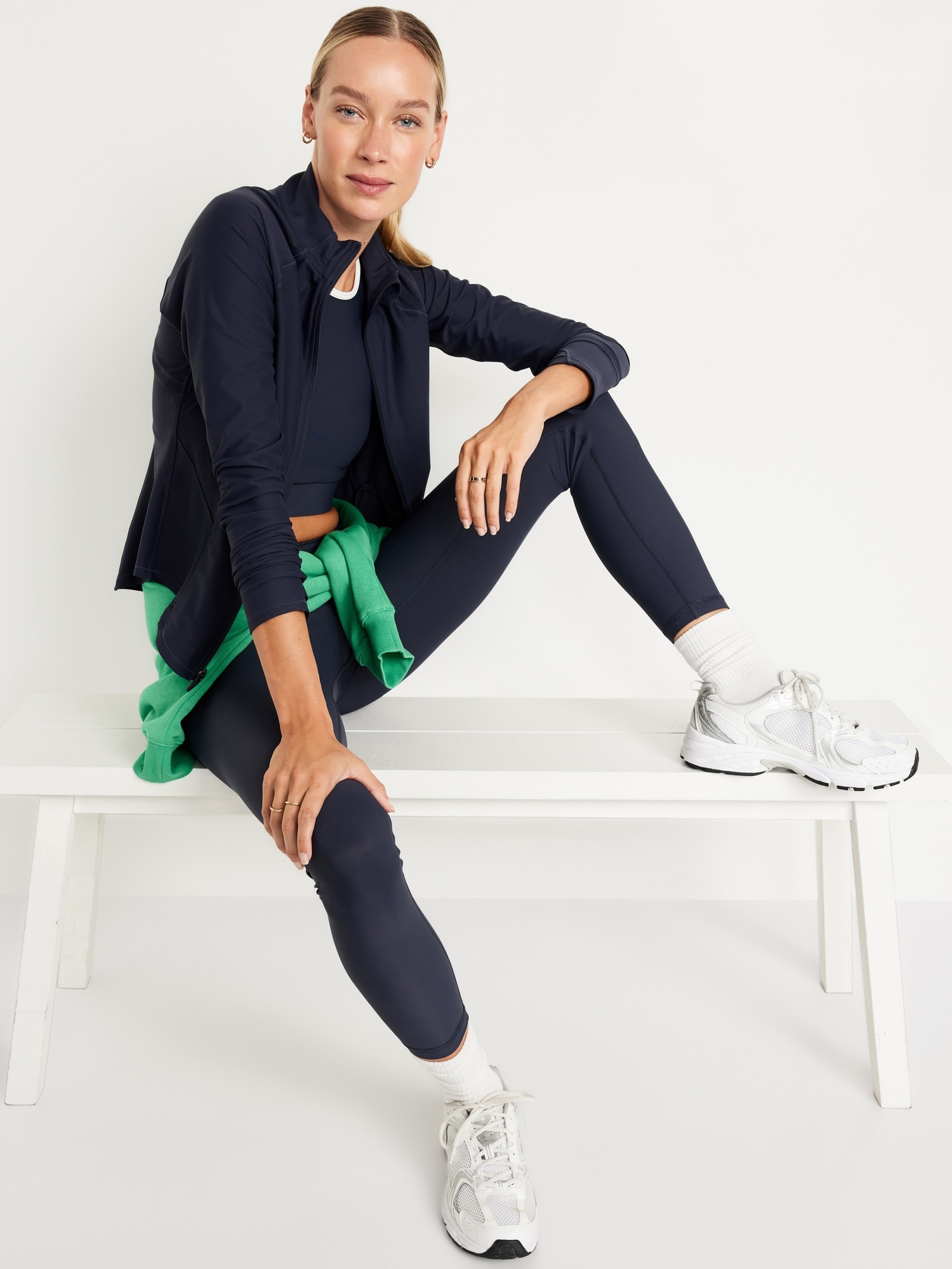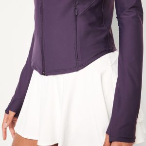 PowerSoft Full Zip: Featuring PowerSoft. Light compression meets a peachy-smooth, sweat-wicking fabric.mock neck, long sleeves, thumbhole cuffs, full-zip front, zip pockets, go-dry wicks moisture, #724598