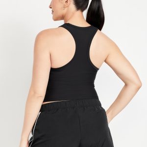 PowerSoft Racerback Cropped Shell Tank: Featuring PowerSoft. Light compression meets a peachy-smooth, sweat-wicking fabric.scoop neck, wide straps, racerback, contrasting piping, go-dry wicks moisture, #749263