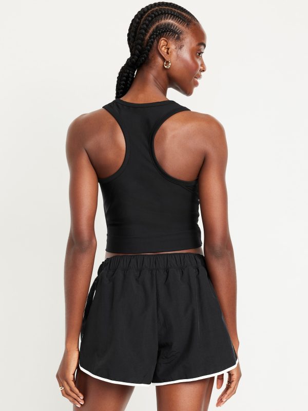 PowerSoft Racerback Cropped Shell Tank: Featuring PowerSoft. Light compression meets a peachy-smooth, sweat-wicking fabric.scoop neck, wide straps, racerback, contrasting piping, go-dry wicks moisture, #749263